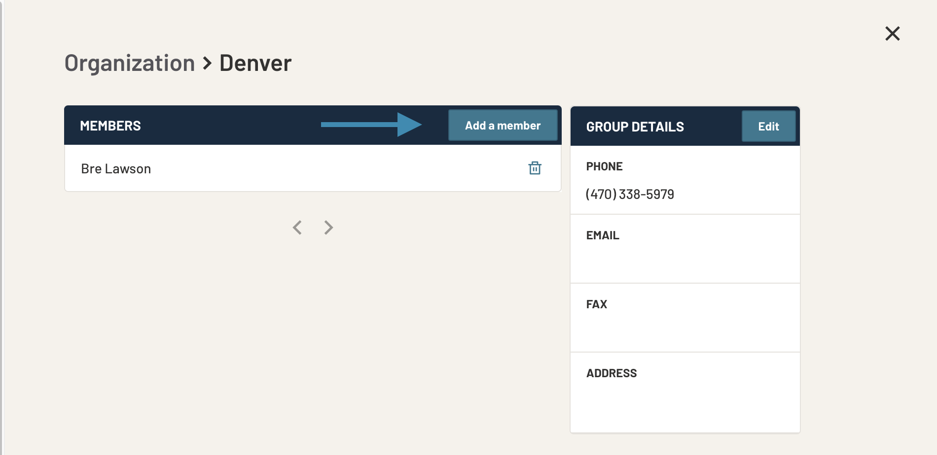 La section Organisation permet aux administrateurs et aux gestionnaires d’ajouter des membres existants à d’autres groupes dans le compte. Vous devez d’abord ajouter un nouvel utilisateur? Cliquez ici pour un tutoriel rapide.