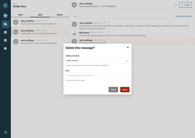 Une fois terminé, cliquez sur "Supprimer", et Prokeep remplacera le message du client par :